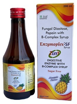 Enzymoplex syrup is a Digestive enzyme like fungal diastase, pa pain with vitamin B complex. Fungal Diastase/papain is indicated as digestive aid for the treatment of indigestion, sour stomach, flatulence, gastric distress and dyspepsia.